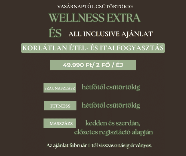 Minden szobához ingyenes wellness használat jár.